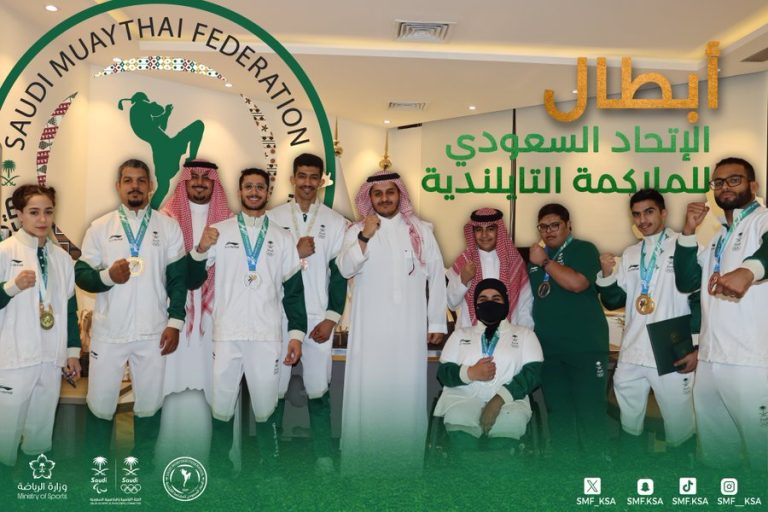 سمو وزير الرياضة عبدالعزيز بن تركي الفيصل يلتقي أبطال #فريق_السعودية في رياضة الملاكمة التايلندية ويهنئهم على إنجازاتهم بحصولهم على ميداليات عالمية وقارية في الموسم الرياضي 2023 – 2024. كما اجتمع لاعبو الملاكمة التايلندية مع صاحب السمو الملكي فهد بن منصور آل سعود، رئيس الاتحاد. والرئيس التنفيذي م. عبد العزيز آل بنان بعد التكريم لمناقشة خطط المستقبل ودعم مسيرتهم الرياضية. نشير بفخر إلى أن الموسم الرياضي 2023 – 2024 شهد صعود رياضة الملاكمة التايلندية إلى المركز الأول من بين جميع الاتحادات القتالية في بطولة دورة الألعاب القتالية